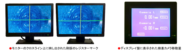 刷版のレジスターマーク間距離に合わせて左右カメラを移動させる。 |